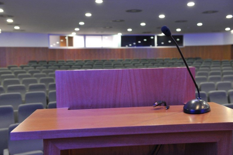 - 6 microfones de presidência com sistema de votação, tradução simultânea e autotracking para câmara de filmar