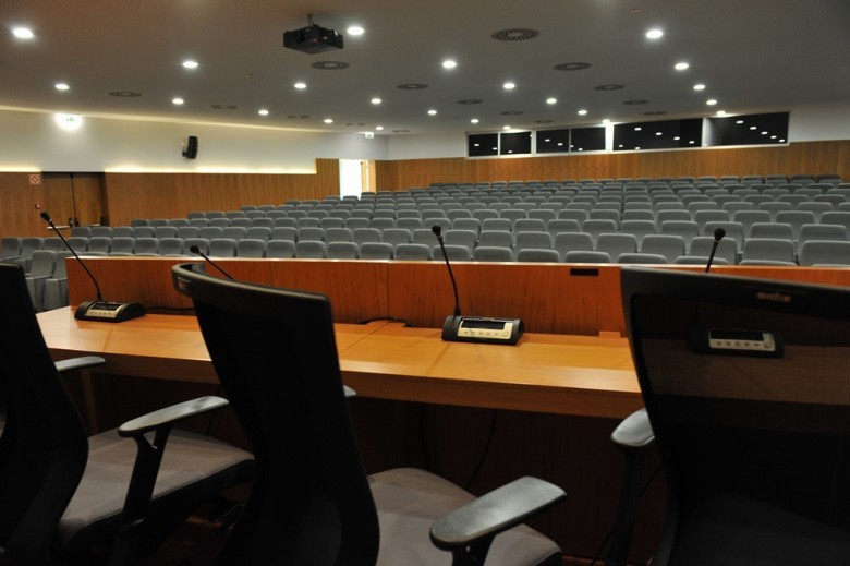 - 6 microfones de presidência com sistema de votação, tradução simultânea e autotracking para câmara de filmar